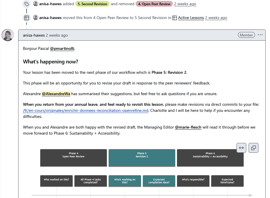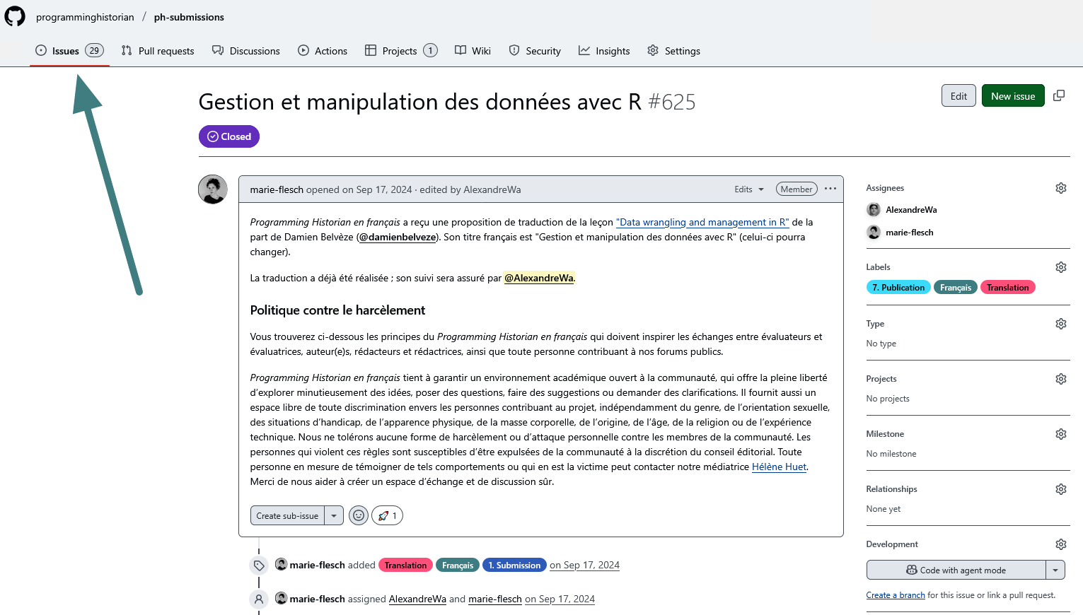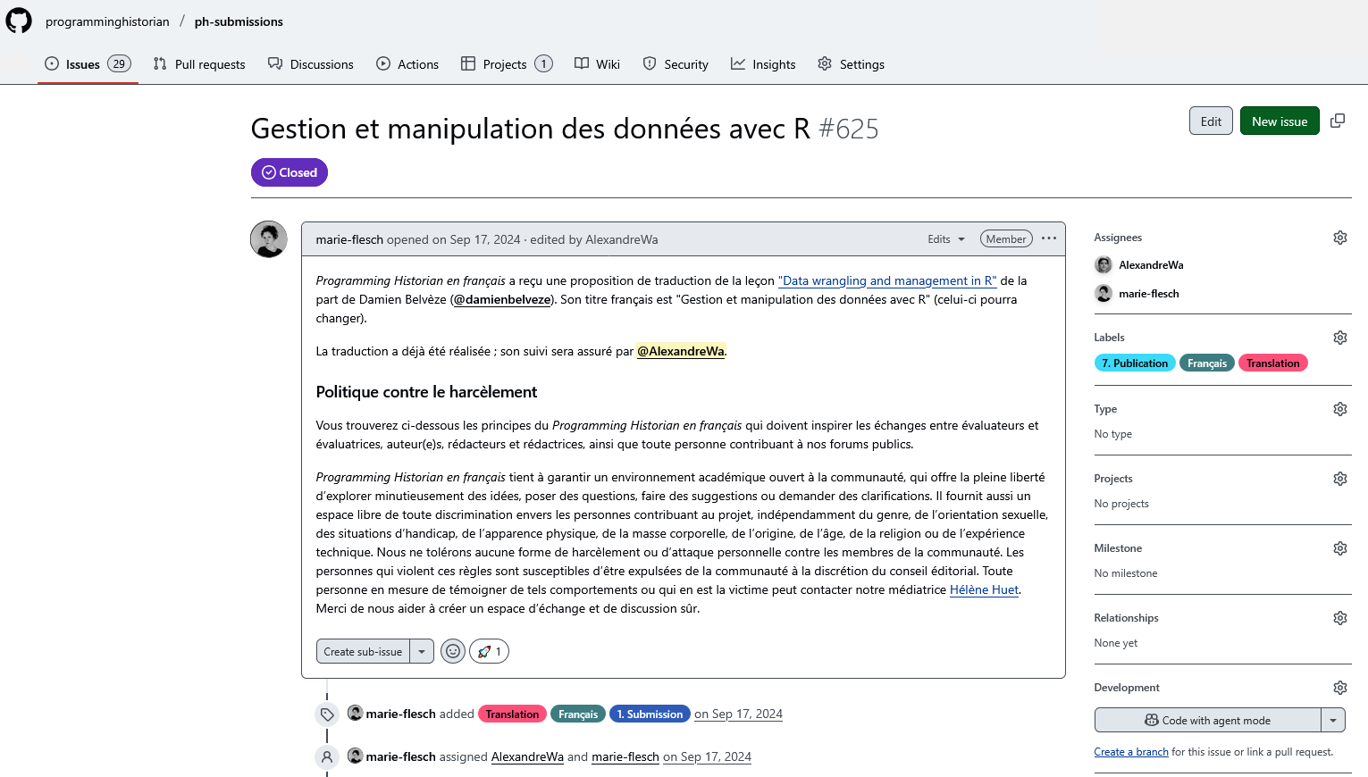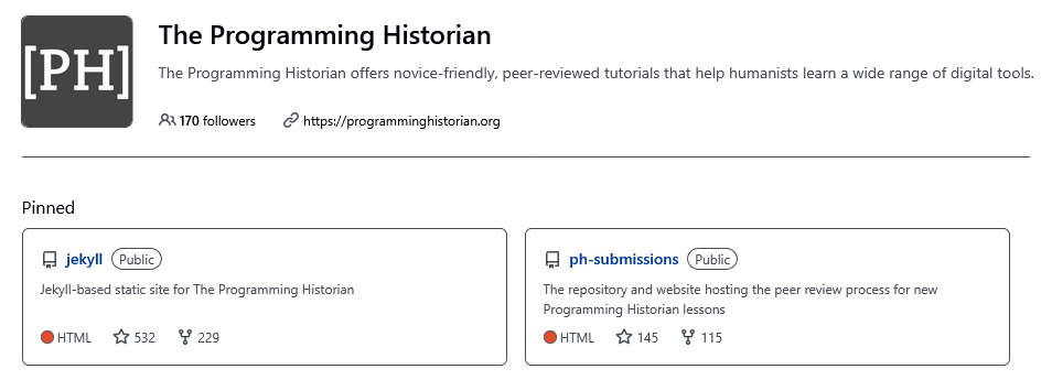 - Pour le suivi des leçons → https://github.com/programminghistorian/ph-submissions/wiki